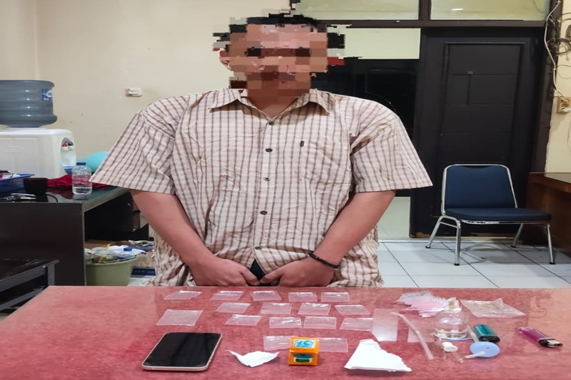 Barang bukti yang diamankan antara lain 38 plastik klip kosong, satu unit ponsel iPhone 13, dua kaca pireks, dua sedotan, satu alat hisap (bong), serta dua korek api gas.