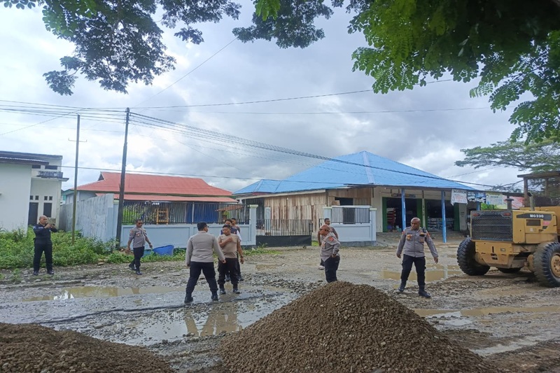 Respons Cepat Keluhan Warga Di Medsos, Kapolres SBT Pimpin Langsung Perbaikan Jalan Rusak di Bula